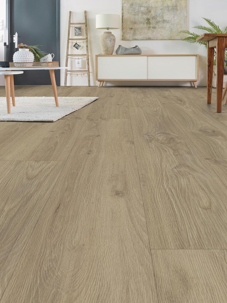 ADOMO Vinyl-Klebesheet Eiche Anis – Designboden mit Holzprägung – umlaufende Microfase – 2,0/0,3 x 232 x 1.227 mm