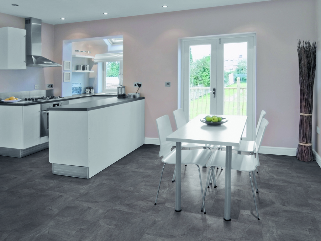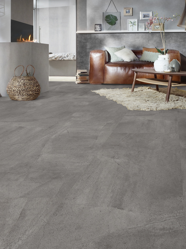 ADOMO Designboden Concrete Grey – Steinoberflächenprägung – umlauf. Microfase – Klicksystem – 5,5/0,5 x 470 x 940 mm (inkl. Trittschalldämmung)