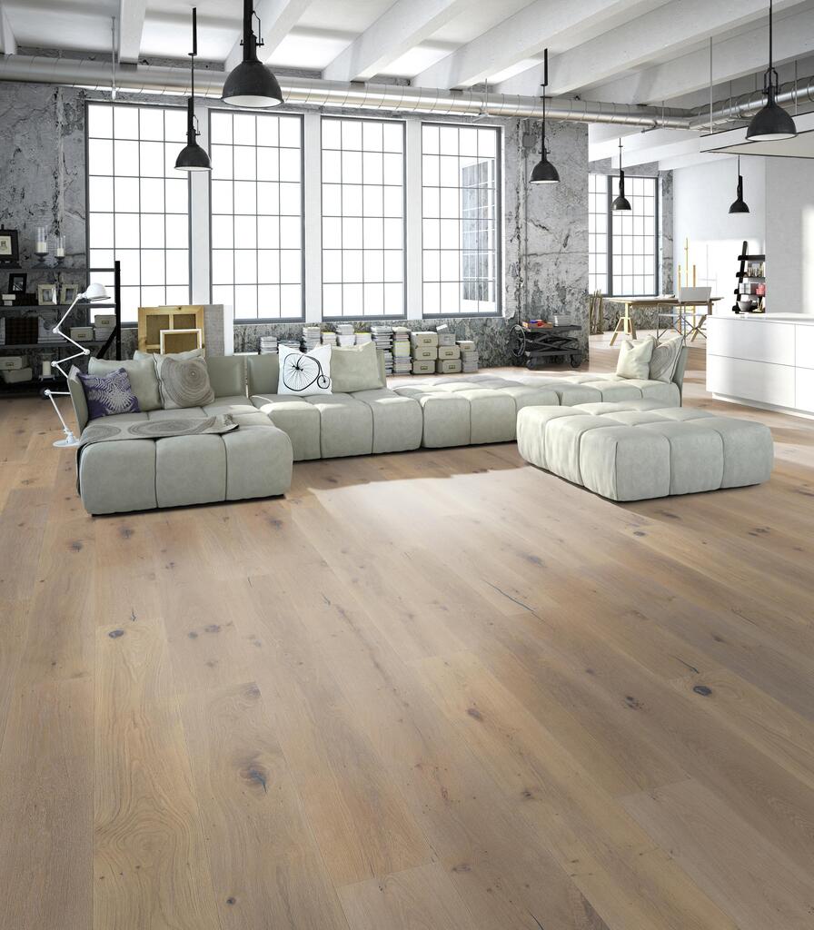 ADOMO Parkett Eiche SAHARA XL – LHD – rustikal – gebürstet, weißgeölt – 4V – 2200 x 260 x 15 mm – Drop-Down – Nutzschicht ca. 4 mm