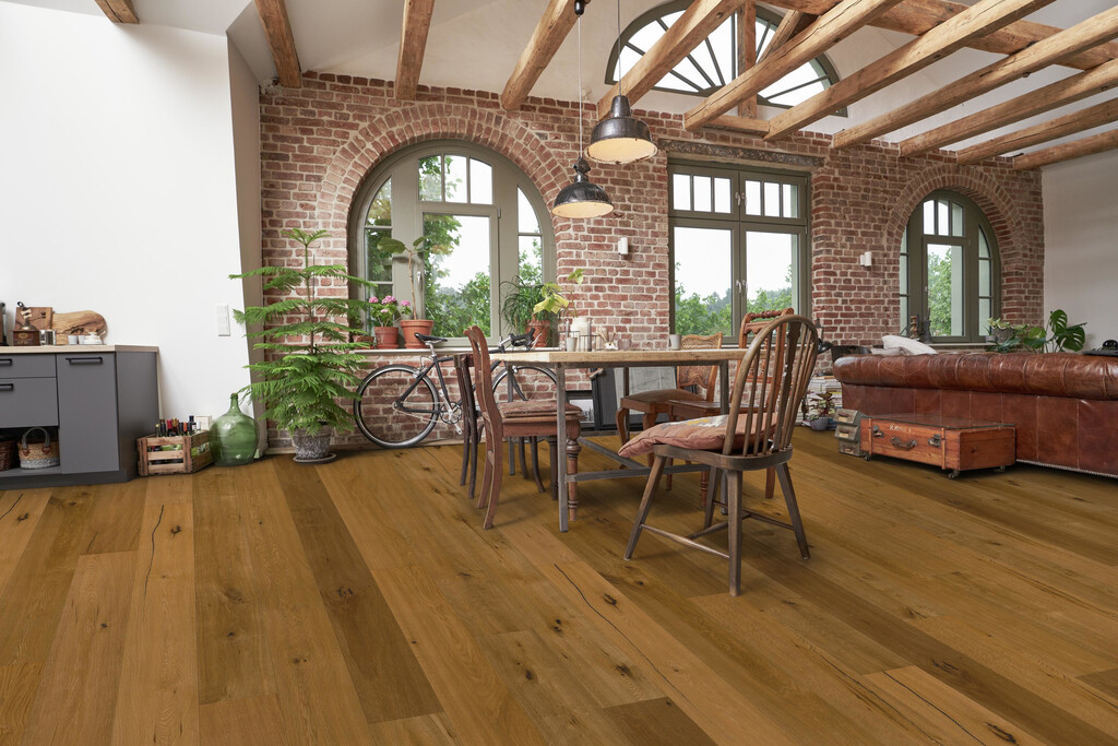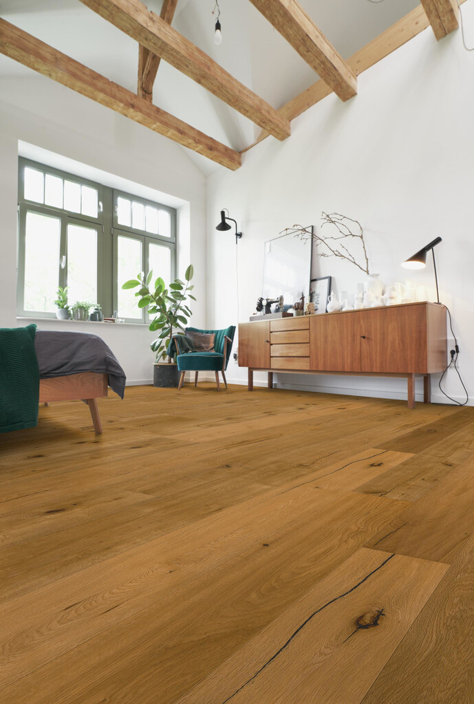 ADOMO Parkett Eiche YOSEMITE – LHD 4V – rustikal – angehobelte Äste, naturgeölt – 1900x190x15mm – Drop-Down – Nutzschicht ca. 4mm