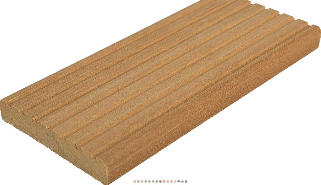 ADOMO Terrassendiele Bangkirai KD prime (YB) SHBL 25 x 145 mm – Sichtseite 7 Nuten, Rückseite fein geriffelt – zertifiziert – #50230