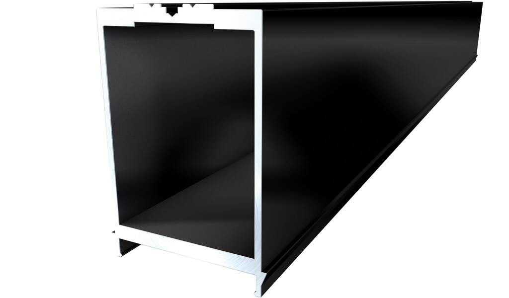 „MEGA“ Alu-Systemschiene pulverbeschichtet schwarz #9103 Abstand zw. zwei Auflagepunkten: bis 3000mm 64x95x4000mm (68mm inkl. Rastnasen)