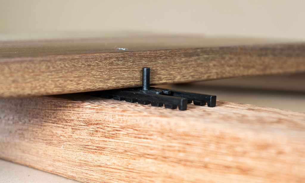 ADOMO Distanzhalter für die direkte Verschraubung von Terrassendielen – Fugenabstand 7 mm, Aufbauhöhe 6 mm – 1 Paket = 100 Stück #50750