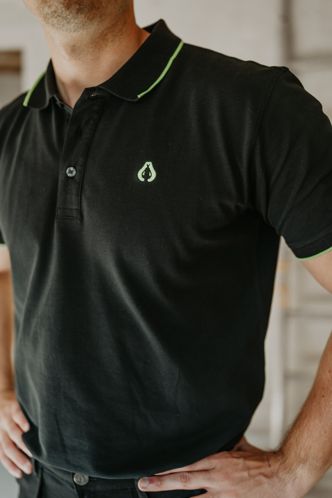 Das vielseitig kombinierbare Polo mit gesticktem MAR Logo in elegantem Schwarz ist ein schlichtes Kleidungsstück für jeden, der ein stilvolles Outfit sucht. Hergestellt aus hochwertiger und bequemer Baumwolle. Die grünen Akzente und das gestickte MAR-Logo auf der Brust des Polos runden das Design auf und verleihen dem Kleidungsstück eine markante Ausstrahlung.