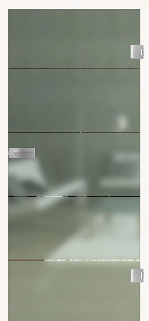 Ganzglastür LINES FOUR 503 – ESG PURE WHITE Siebdruck Bandbohrung: Office, Schlossbohrung: Studio 1972 x 834 x 8mm, DIN L