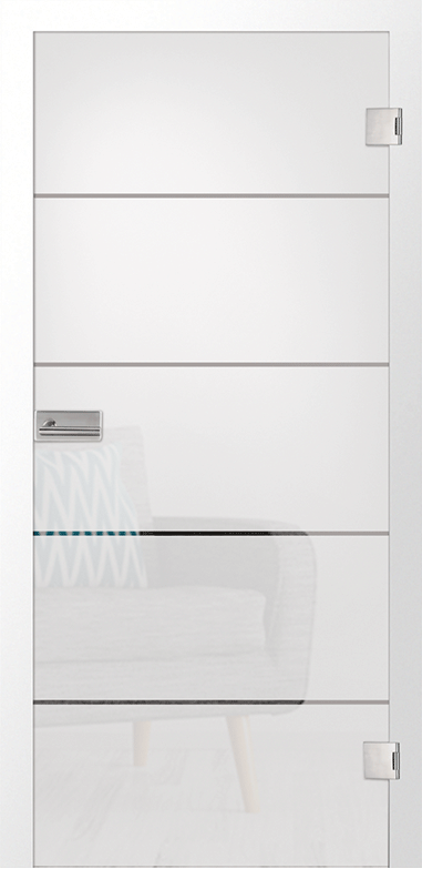 Ganzglastür Prime 7 Softweiß Bandbohrung: Office, Schlossbohrung: Studio 1972 x 834 x 8mm, DIN R